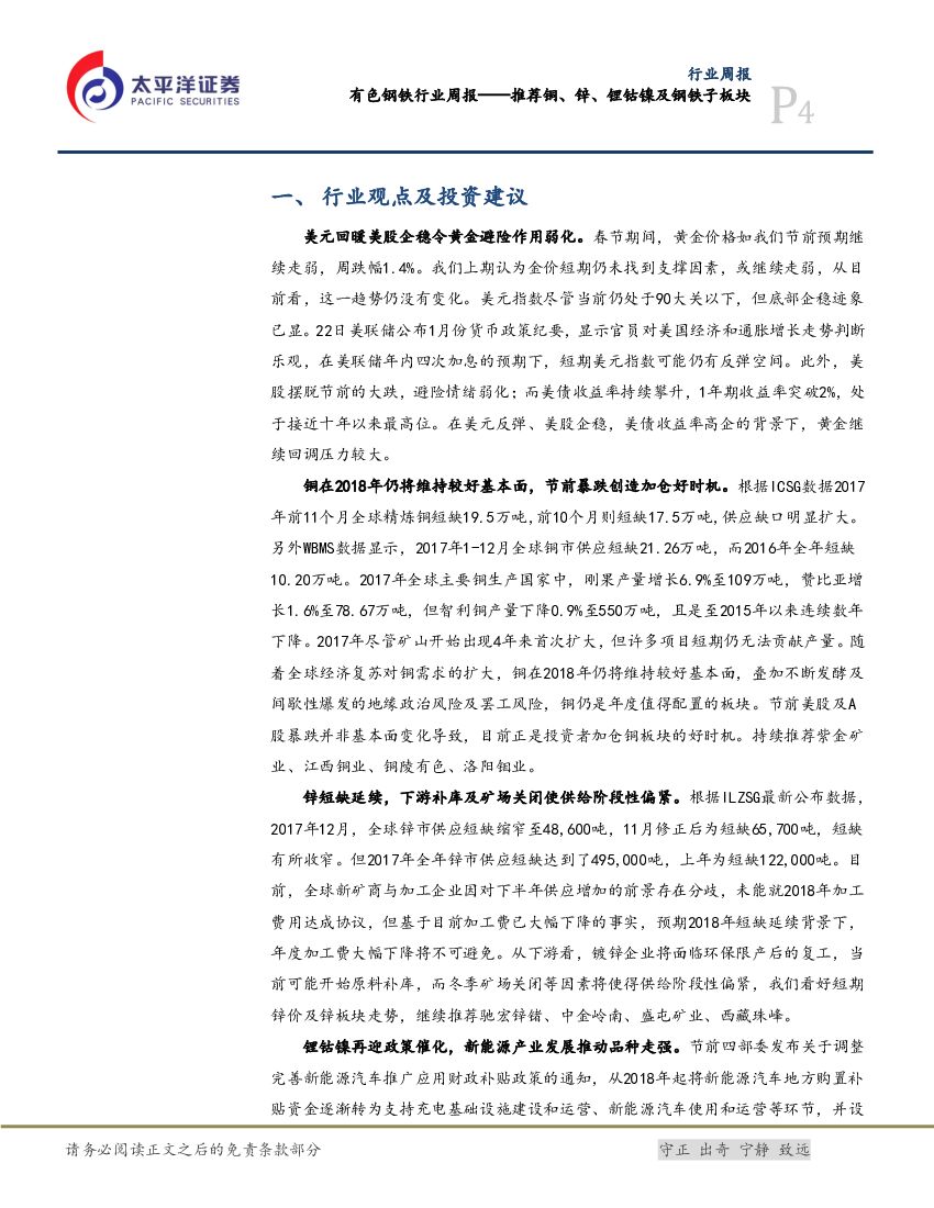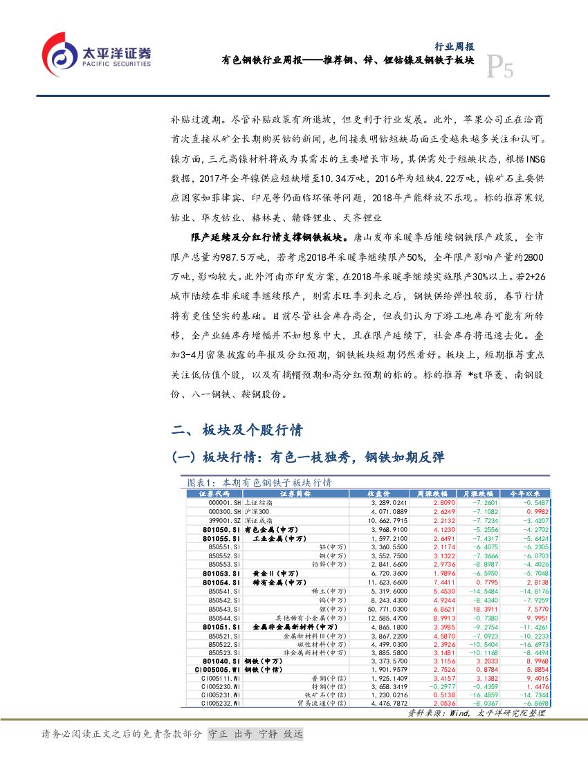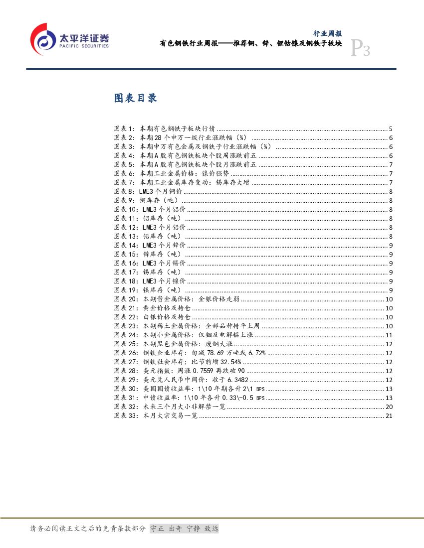 太平洋证券:有色钢铁行业周报:推荐铜、锌、锂钴镍及钢铁子板块.pdf