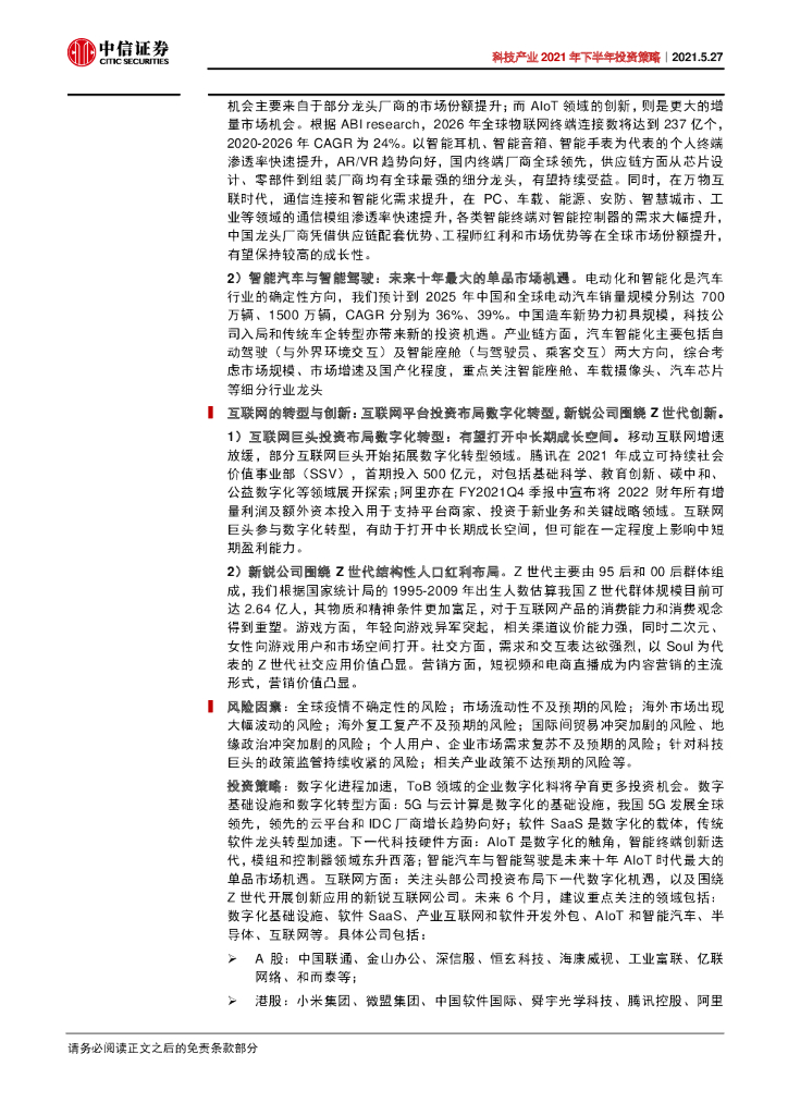 中信证券:科技行业产业2021年下半年投资策略:从ToC到ToB,数字化转型加速.pdf