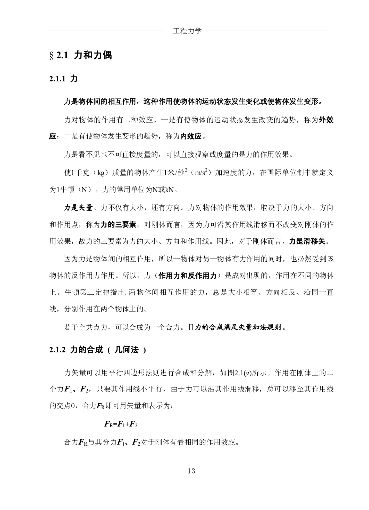 《工程力学》电子教材-第一节 力和力偶.pdf
