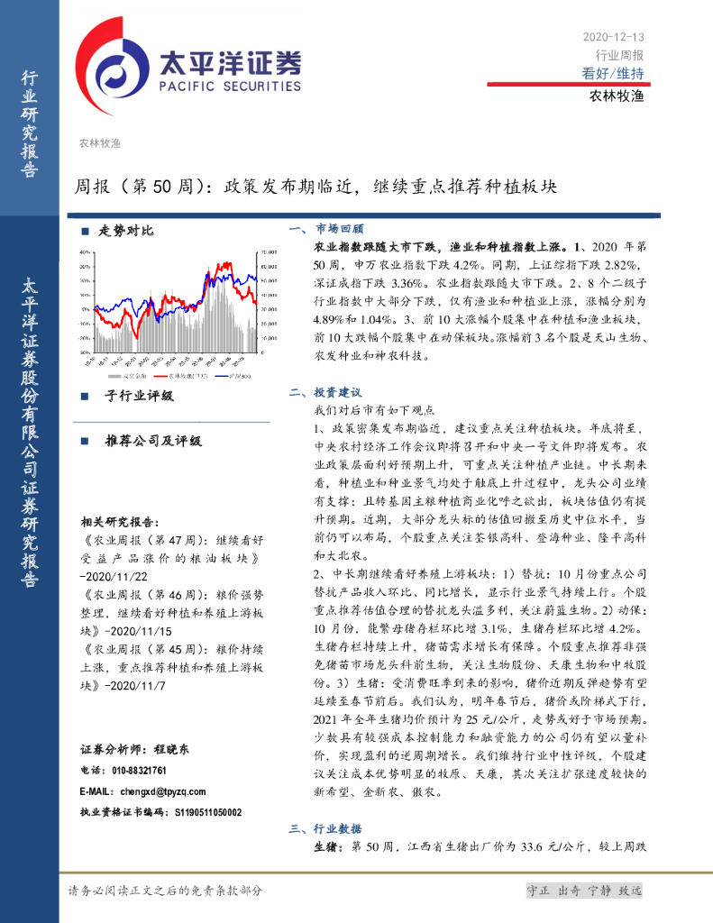 太平洋证券:农林牧渔周报(第50周):政策发布期临近,继续重点推荐种植板块.pdf