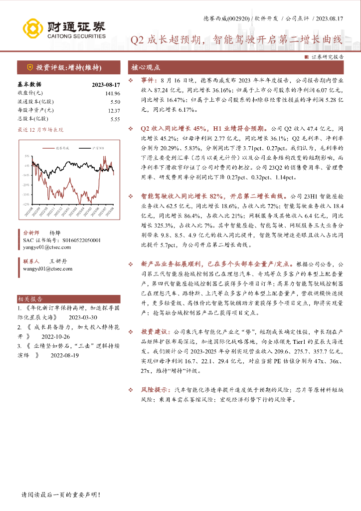 财通证券:德赛西威(002920)-Q2成长超预期,智能驾驶开启第二增长曲线.pdf