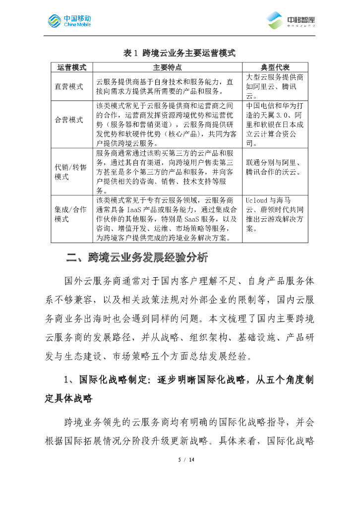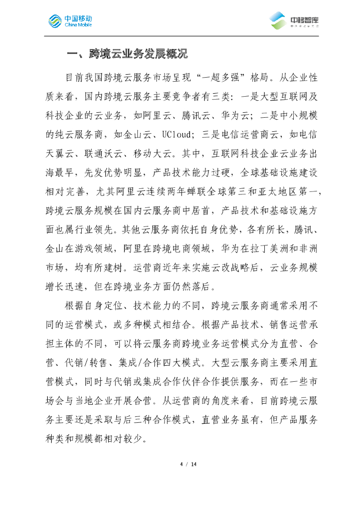 中移智库:国内云服务商跨境业务发展经验分析.pdf