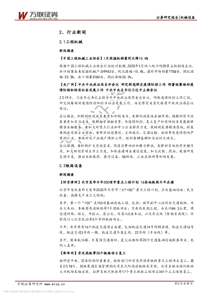 万联证券:机械设备行业周观点:挖掘机销量同比下降,工业互联网建设受政策关注.pdf