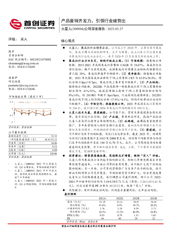 首创证券:火星人(300894)-公司深度报告:产品营销齐发力,引领行业破势出.pdf