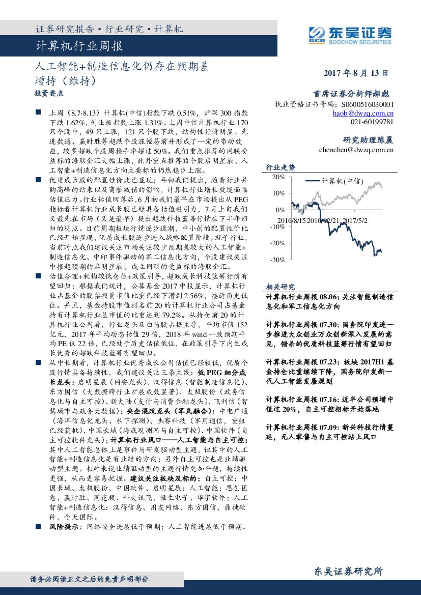 东吴证券:计算机行业周报:人工智能+制造信息化仍存在预期差.pdf