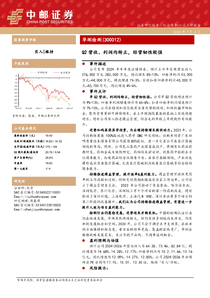 中邮证券:华测检测(300012)-Q2营收、利润均转正,经营韧性较强.pdf