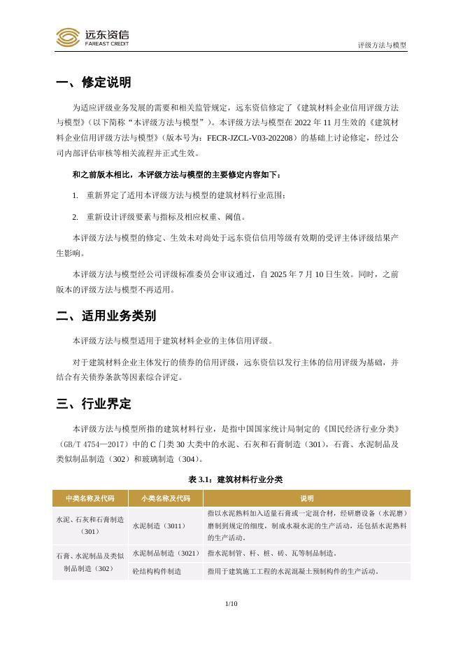 远东资信:建筑材料企业信用评级方法与模型(FECR-JZCL-V04-202502).pdf