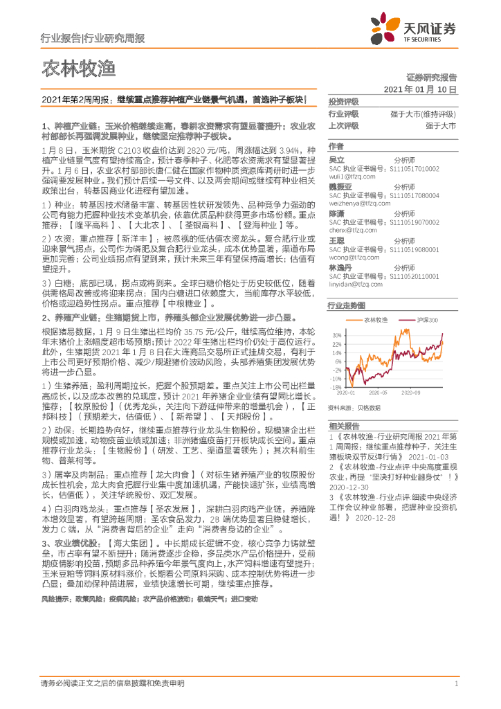 天风证券:农林牧渔2021年第2周周报:继续重点推荐种植产业链景气机遇,首选种子板块!.pdf