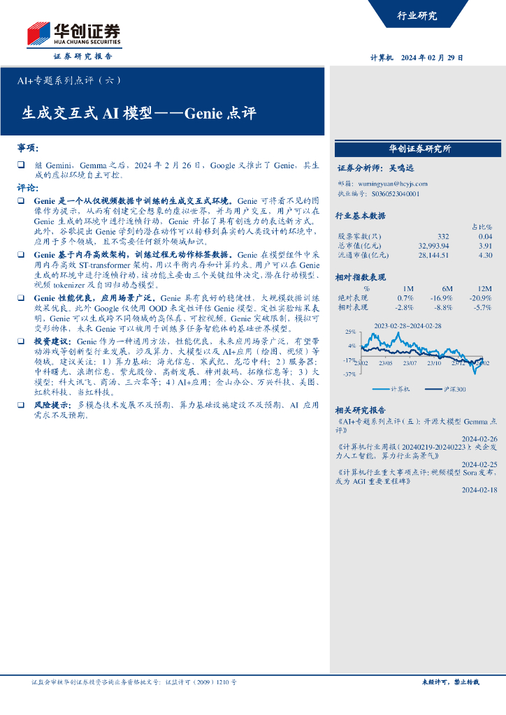 华创证券:AI+专题系列点评(六)生成交互式AI模型——Genie点评.pdf