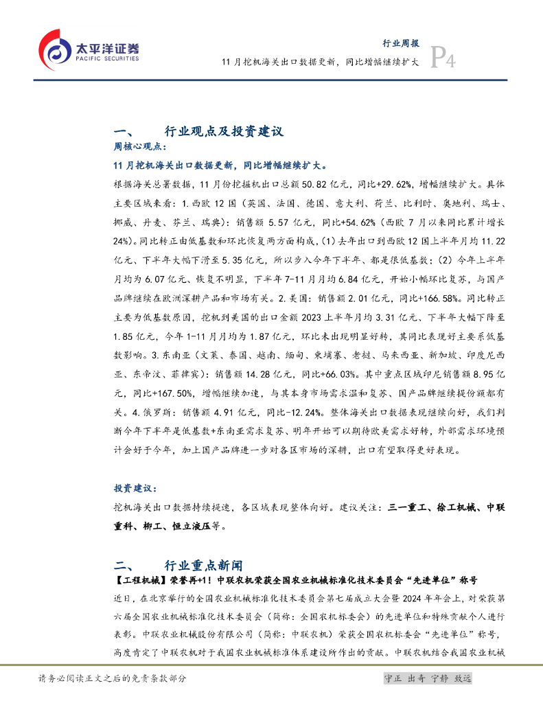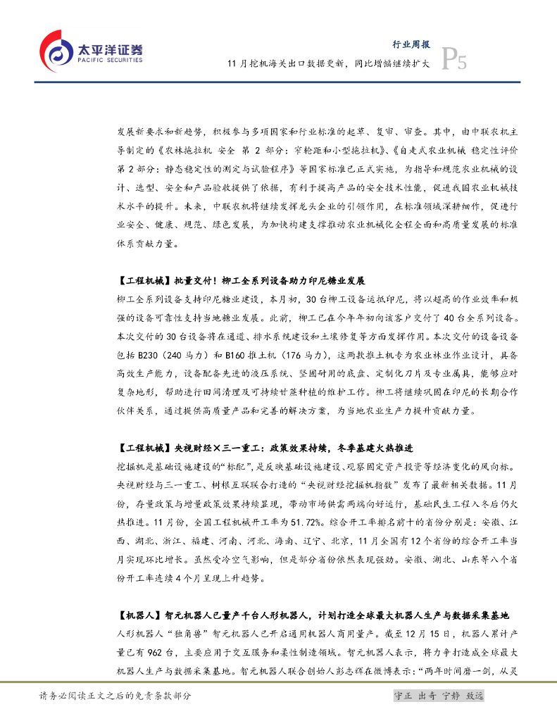 太平洋证券:机械行业周报:11月挖机海关出口数据更新,同比增幅继续扩大.pdf