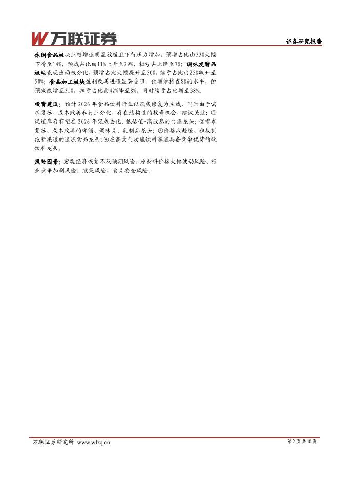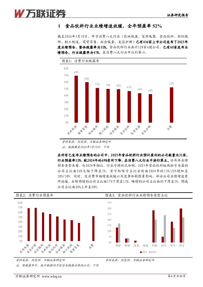 万联证券:食品饮料行业2025年业绩预告综述:整体预盈率下降,静待政策发力与需求回暖.pdf