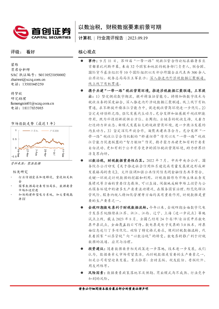 首创证券:计算机行业简评报告:以数治税,财税数据要素前景可期.pdf