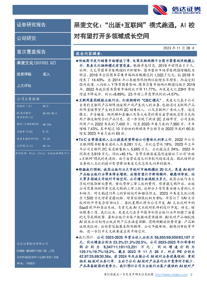 信达证券:果麦文化(301052)-首次覆盖报告:“出版+互联网”模式跑通,AI校对有望打开多领域成长空间.pdf