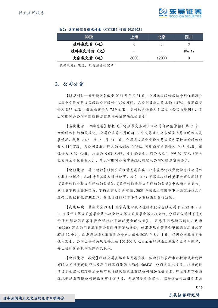 东吴证券:环保行业跟踪周报:【高能环境】受益金属价格上涨,【龙净环保】矿山绿电贡献业绩,重视水固红利价值