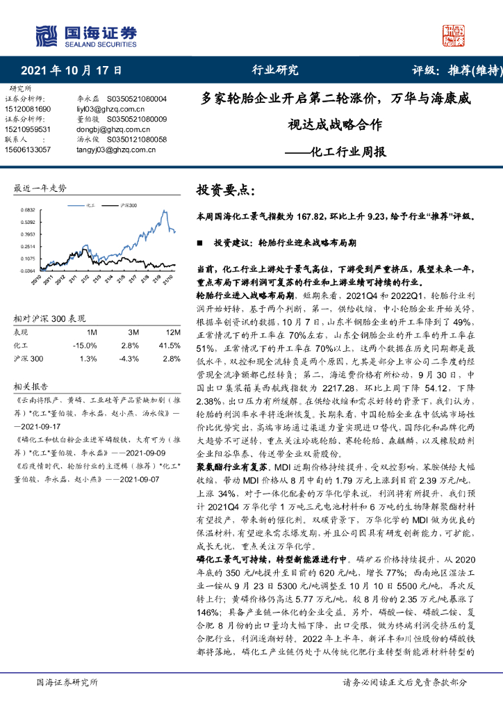 国海证券:化工行业周报:多家轮胎企业开启第二轮涨价,万华与海康威视达成战略合作.pdf