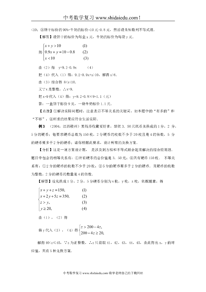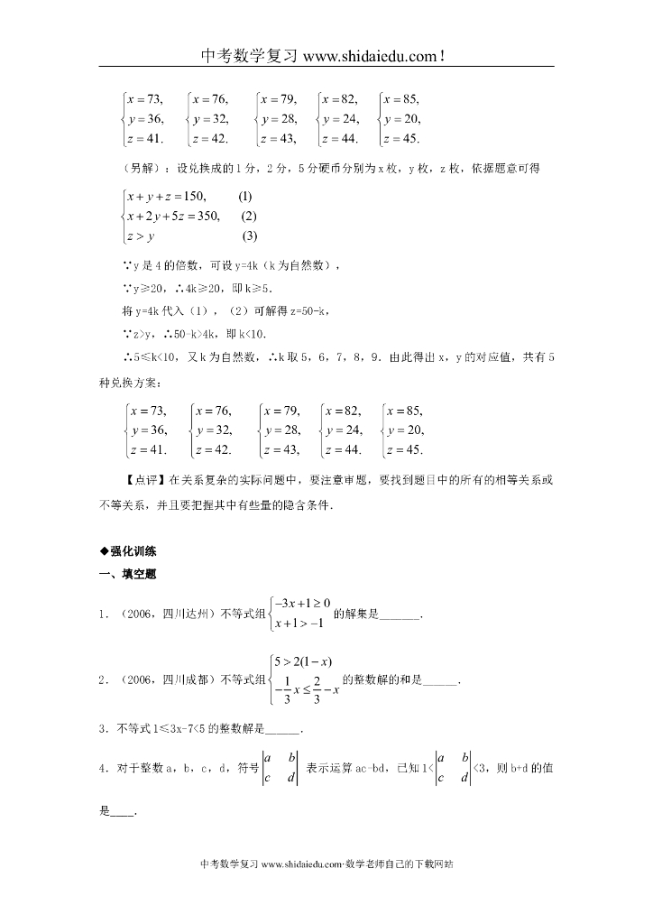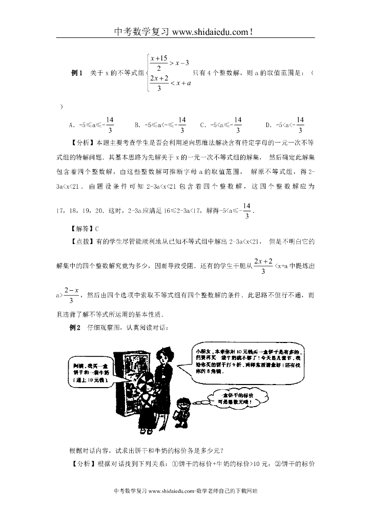 最新中考数学复习教材回归知识讲解-例题解析-强化训练(一元一次不等式组及其应用)文档.doc