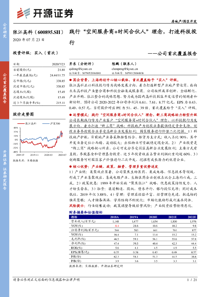 开源证券:张江高科(600895)-公司首次覆盖报告:践行“空间服务商+时间合伙人”理念,打造科技投行.pdf