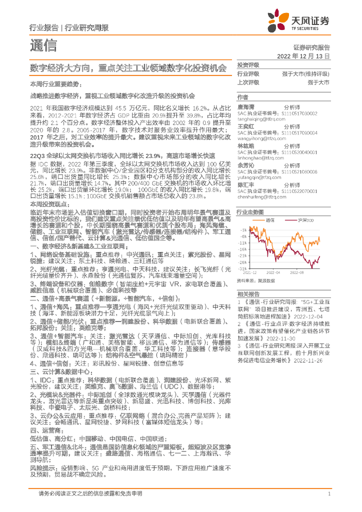 天风证券:通信行业研究周报:数字经济大方向,重点关注工业领域数字化投资机会.pdf