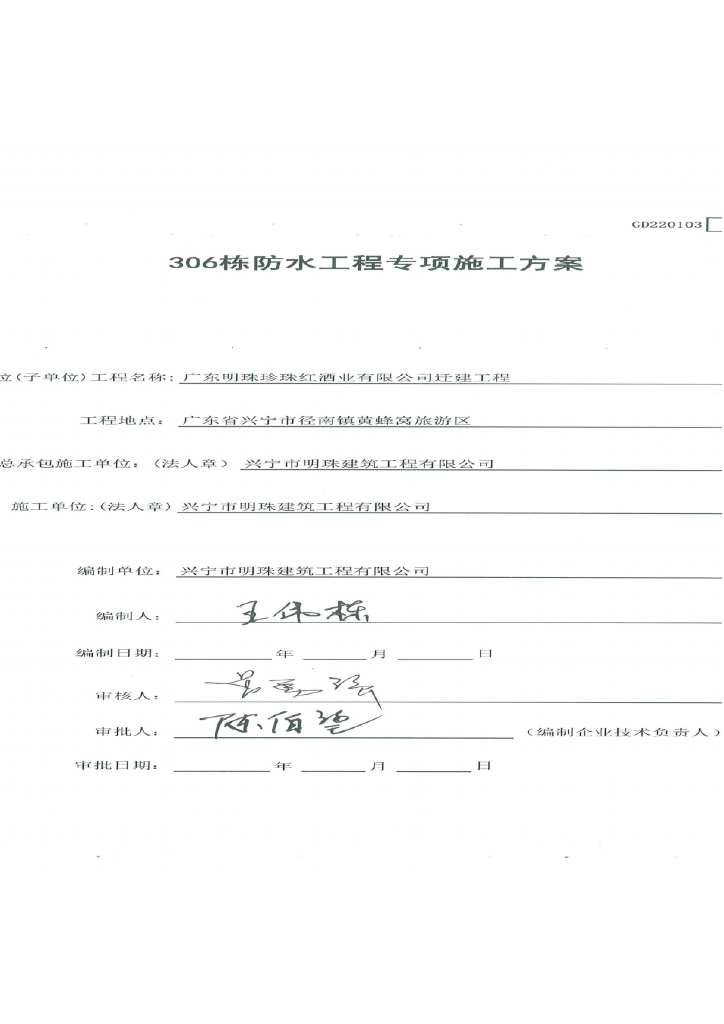 广东明珠珍珠红酒业有限公司迁建项目防水施工方案(51页).pdf