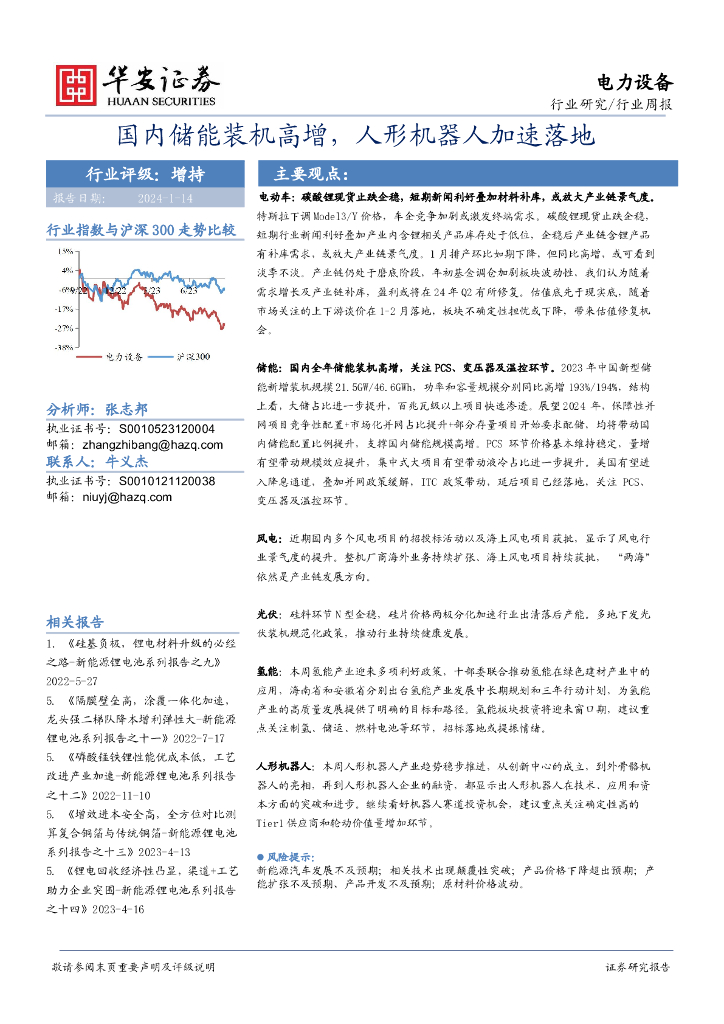 华安证券:电力设备行业周报:国内储能装机高增,人形机器人加速落地.pdf
