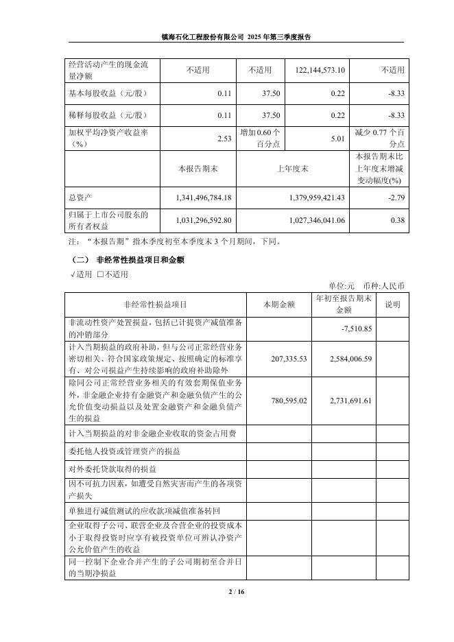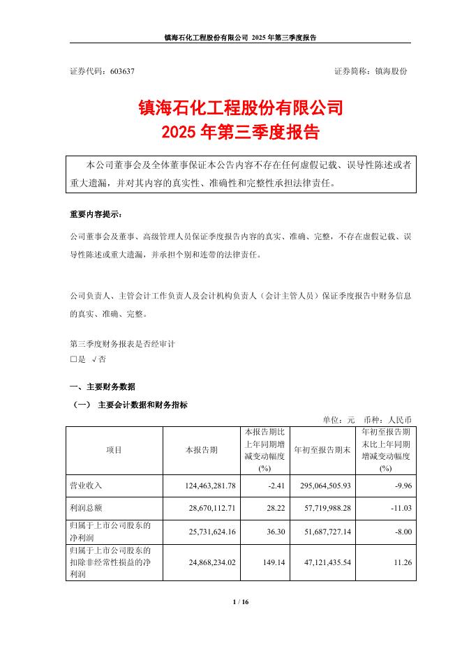 603637-镇海股份:镇海石化工程股份有限公司2025年第三季度报告.pdf
