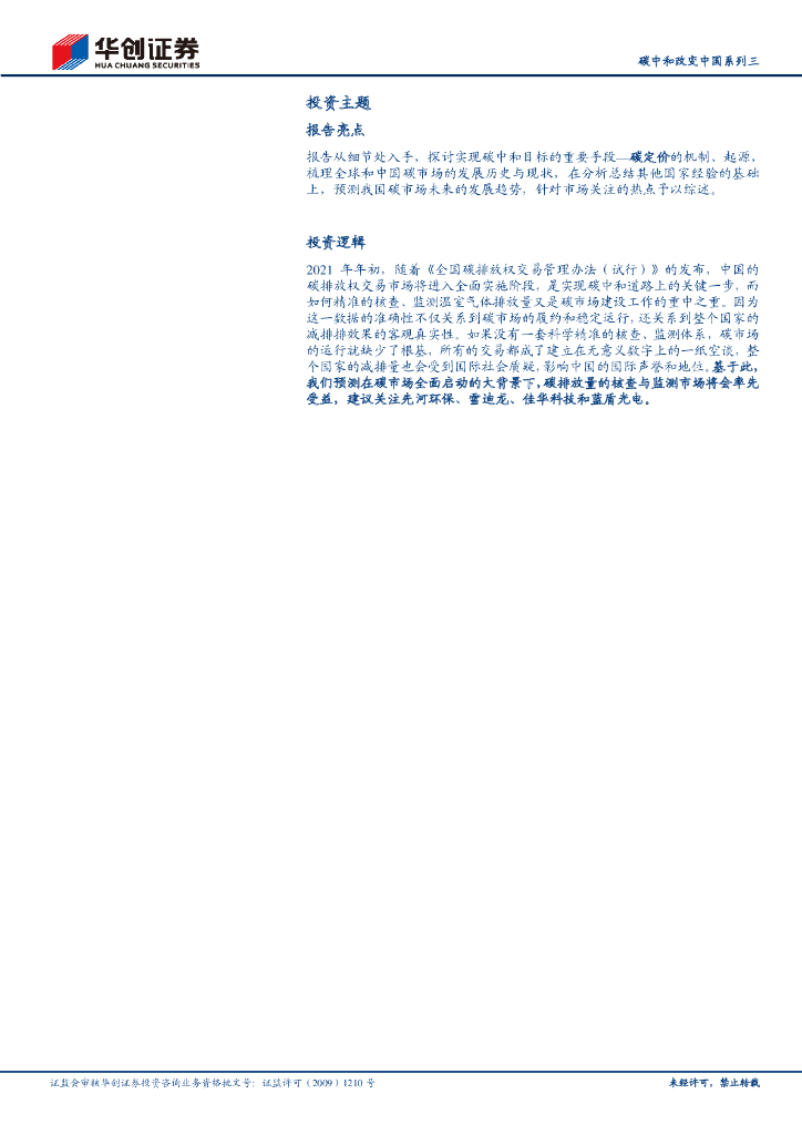 华创证券:碳中和改变中国系列3:碳定价机制回顾及碳交易市场机会挖掘.pdf