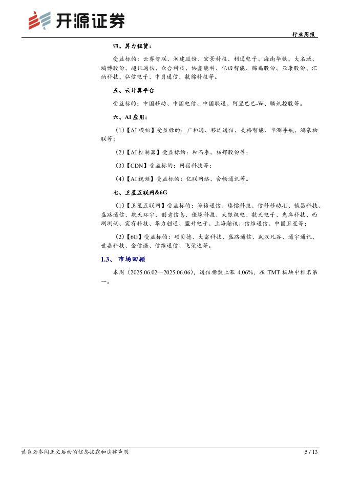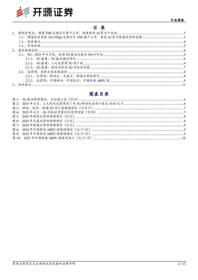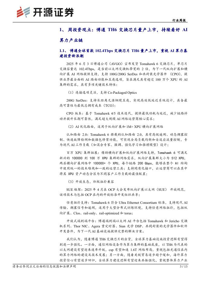 开源证券:通信行业周报:博通TH6交换芯片量产上市,持续看好AI算力产业链.pdf