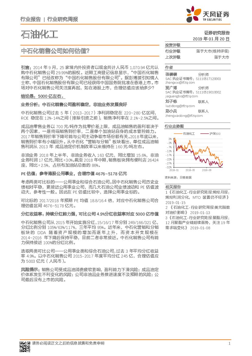 天风证券:石油化工行业研究周报:中石化销售公司如何估值?.pdf