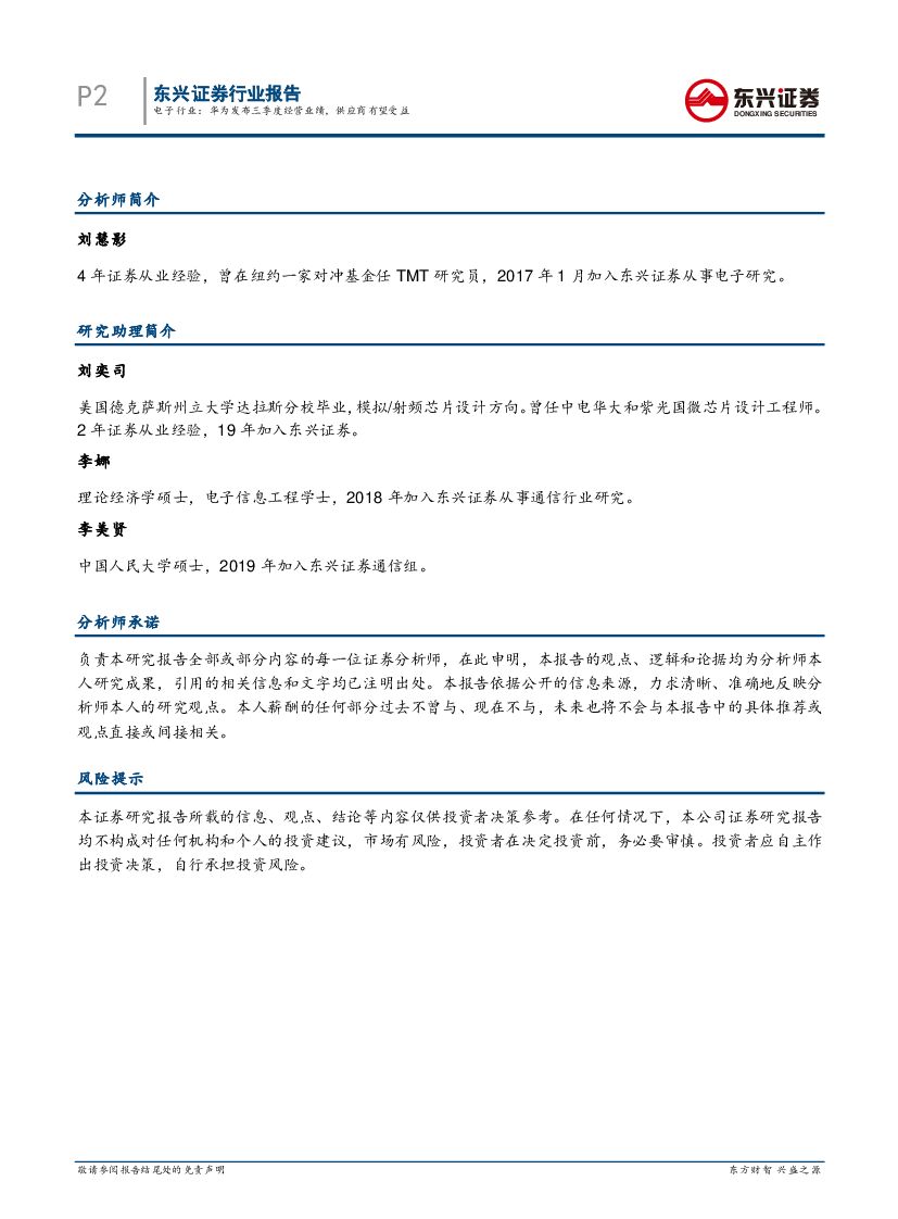 东兴证券:电子通信联合点评:华为发布三季度经营业绩,供应商有望受益.pdf