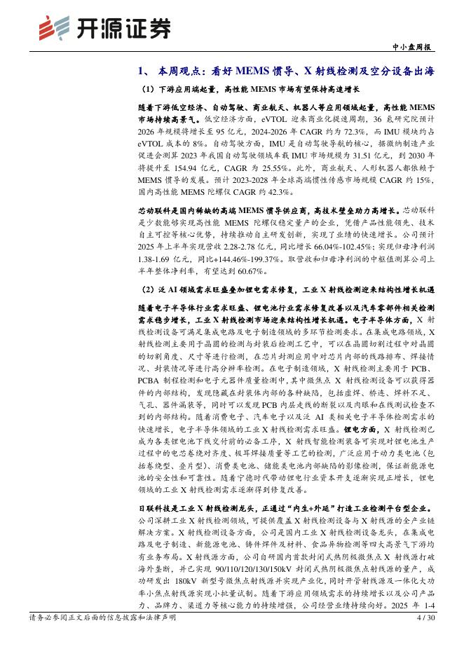 开源证券:中小盘周报:看好MEMS惯导、X射线检测及空分设备出海,关注3D扫描.pdf