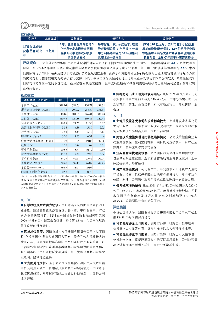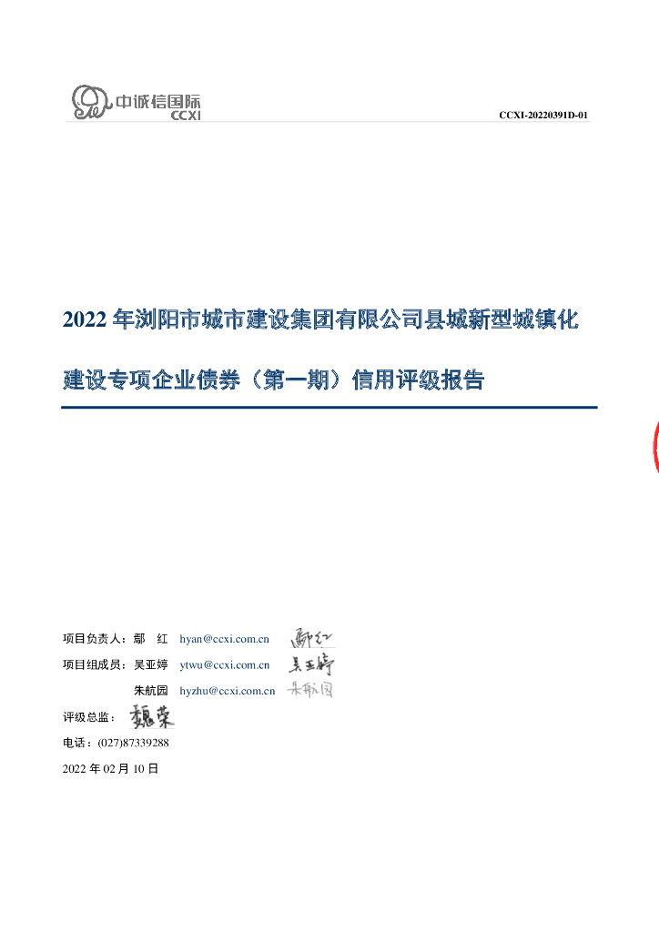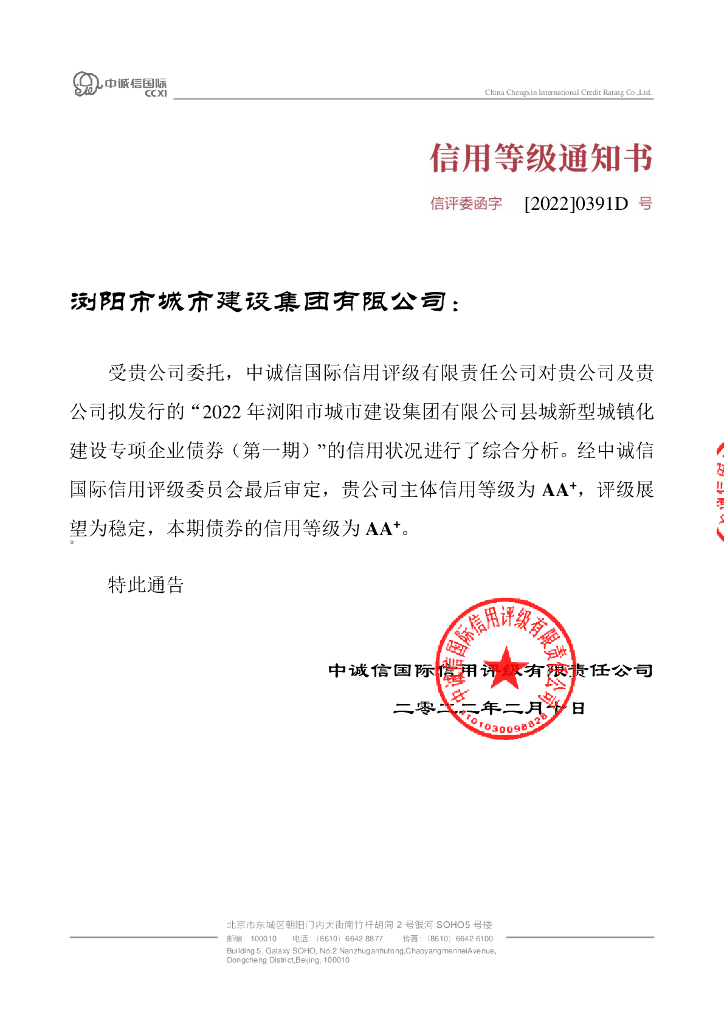中诚信:2022年浏阳市城市建设集团有限公司县城新型城镇化建设专项企业债券(第一期)信用评级报告.pdf