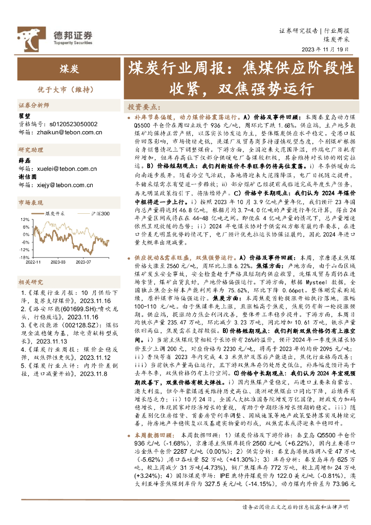 德邦证券:煤炭行业周报:焦煤供应阶段性收紧,双焦强势运行.pdf