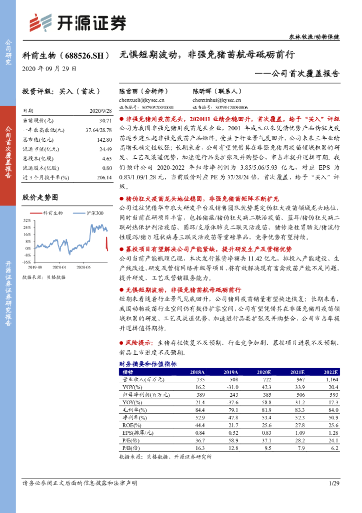 开源证券:科前生物(688526)-公司首次覆盖报告:无惧短期波动,非强免猪苗航母砥砺前行.pdf