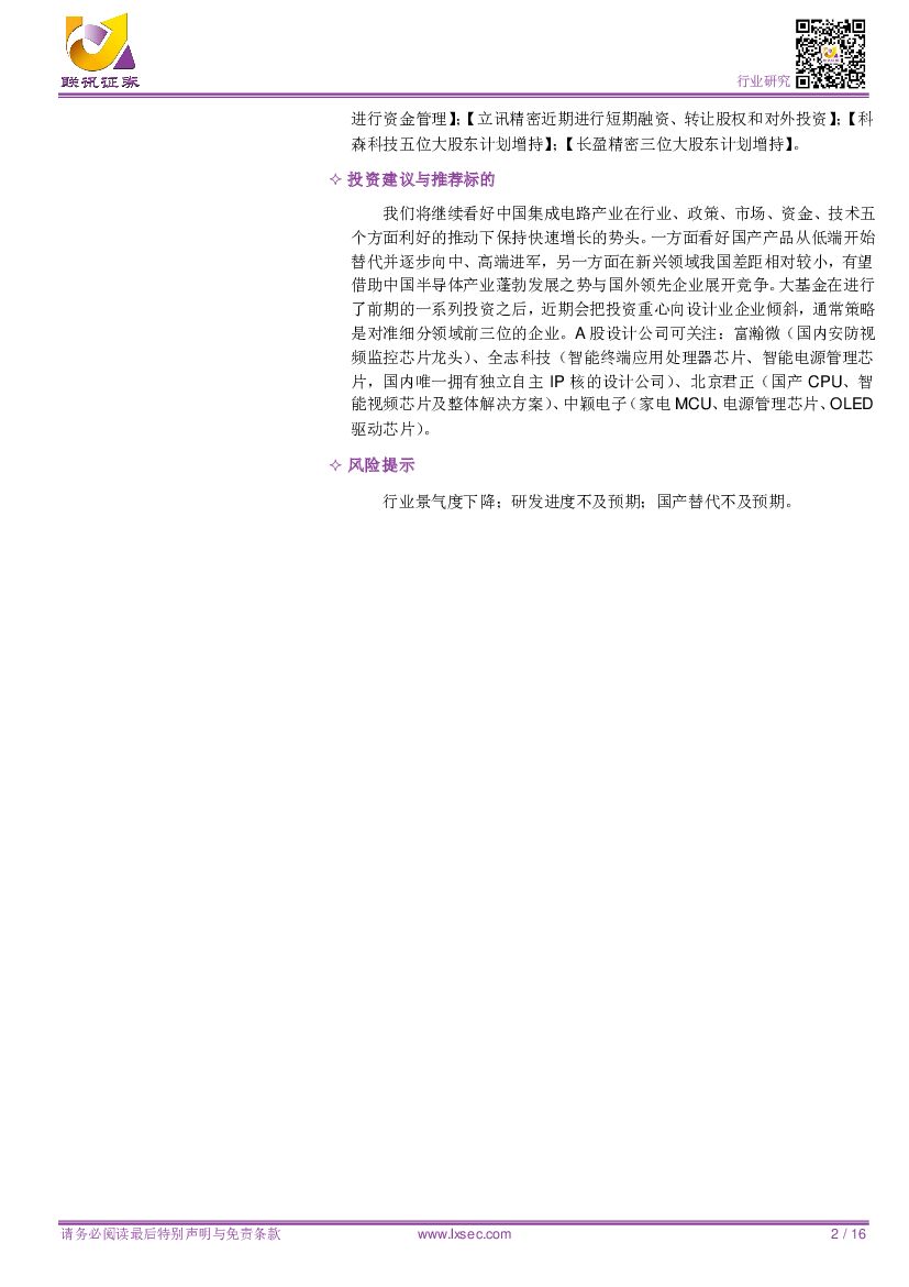 联讯证券:【联讯电子行业周报】大基金第二期募资中,预计增加设计业投资比重.pdf