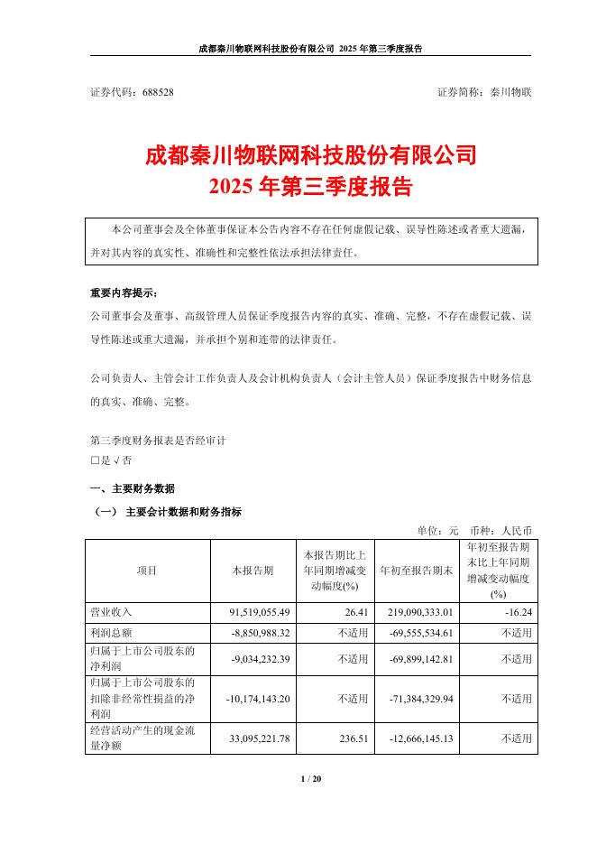 688528-秦川物联:2025年第三季度报告.pdf