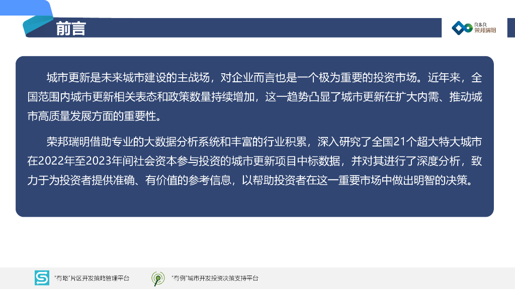荣邦瑞明:全国超大特大城市社会资本参与投资城市更新市场分析专题报告(2022-2023).pdf