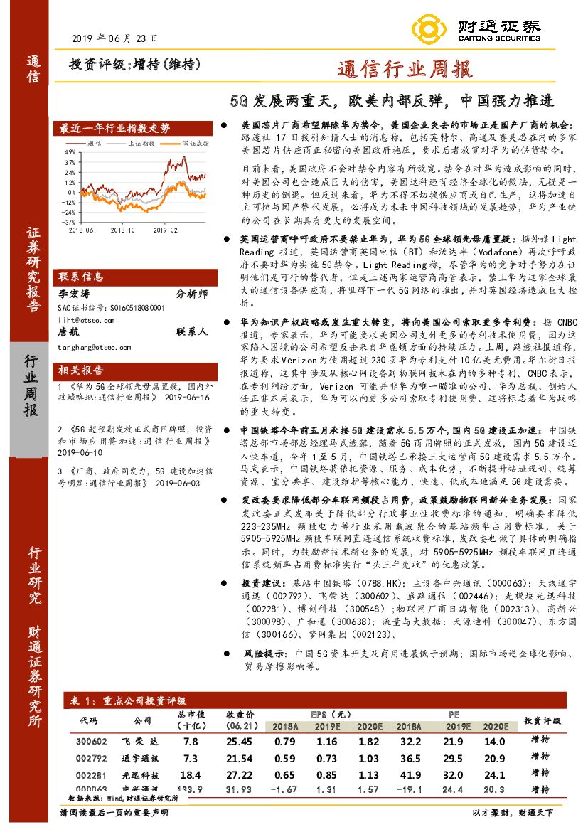 财通证券:通信行业周报:5G发展两重天,欧美内部反弹,中国强力推进.pdf