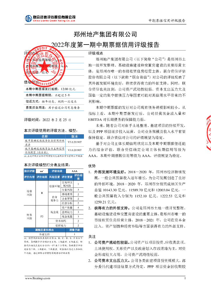 联合资信:郑州地产集团有限公司2022年度第一期中期票据信用评级报告.pdf