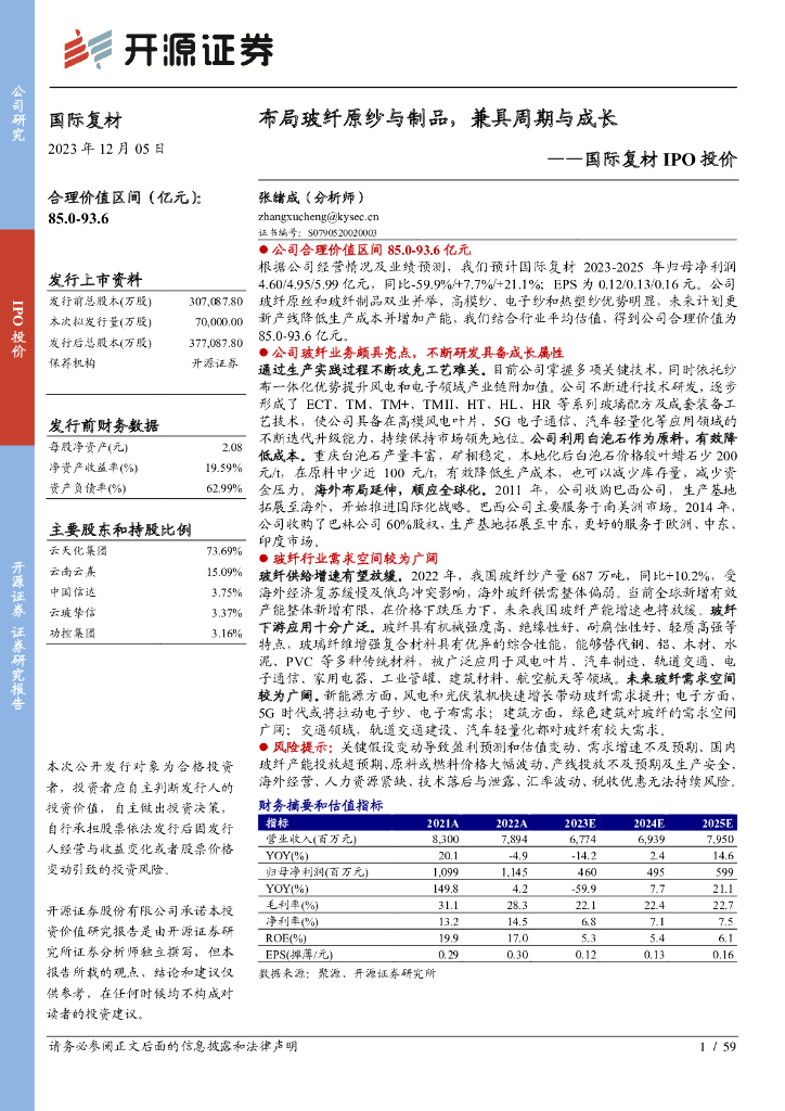开源证券:国际复材IPO投价:布局玻纤原纱与制品,兼具周期与成长.pdf