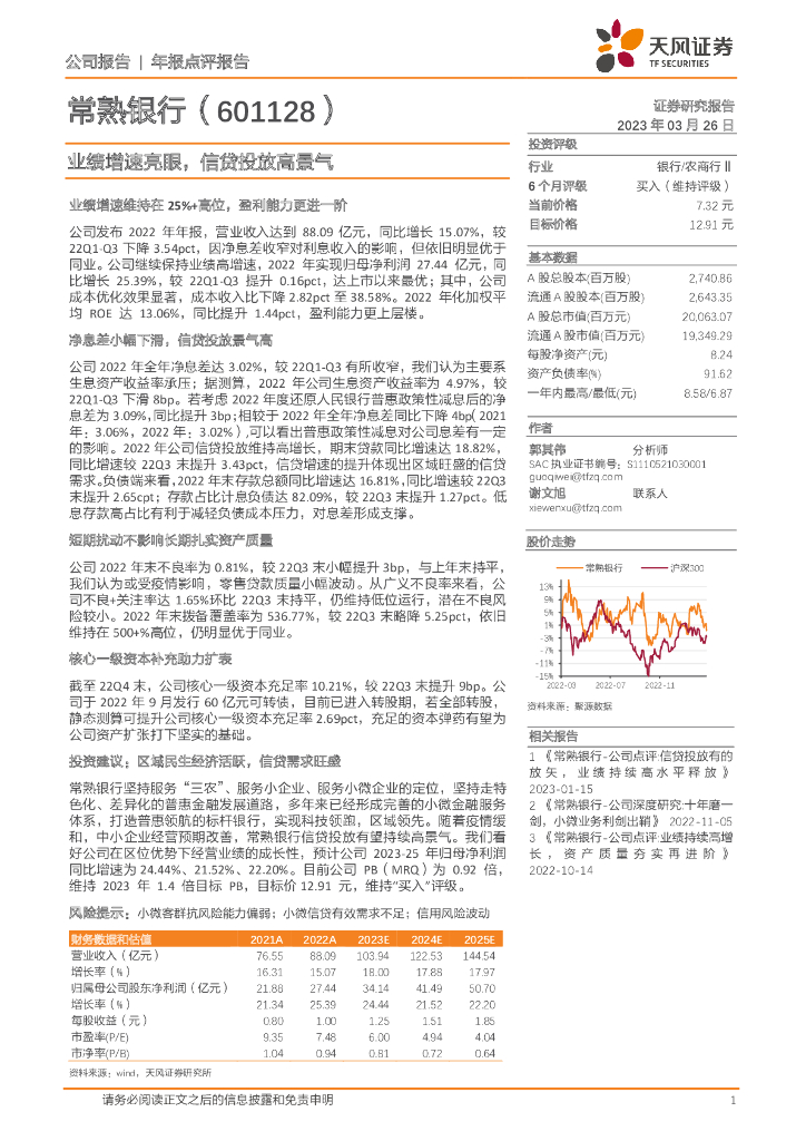 天风证券:常熟银行(601128)-业绩增速亮眼,信贷投放高景气.pdf