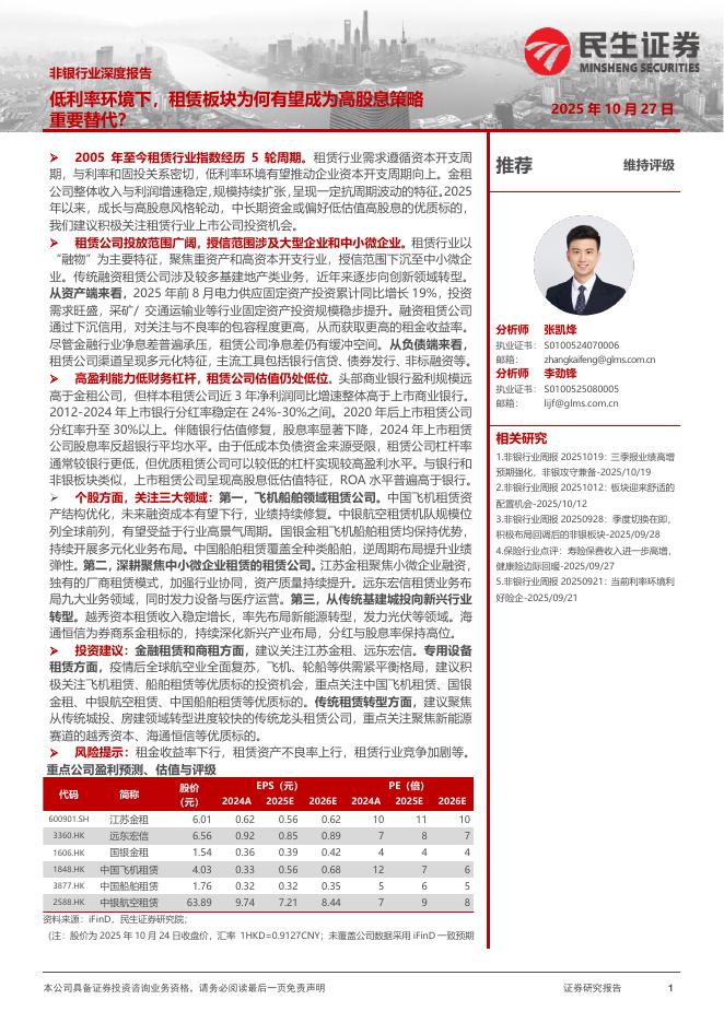 民生证券:非银行业深度报告:低利率环境下,租赁板块为何有望成为高股息策略重要替代?.pdf