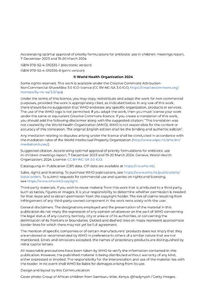 WHO世界卫生组织:2023年12月7日和2024年3月19日至20日加速儿童抗生素优先配方的最佳批准:会议报告(英文版).pdf