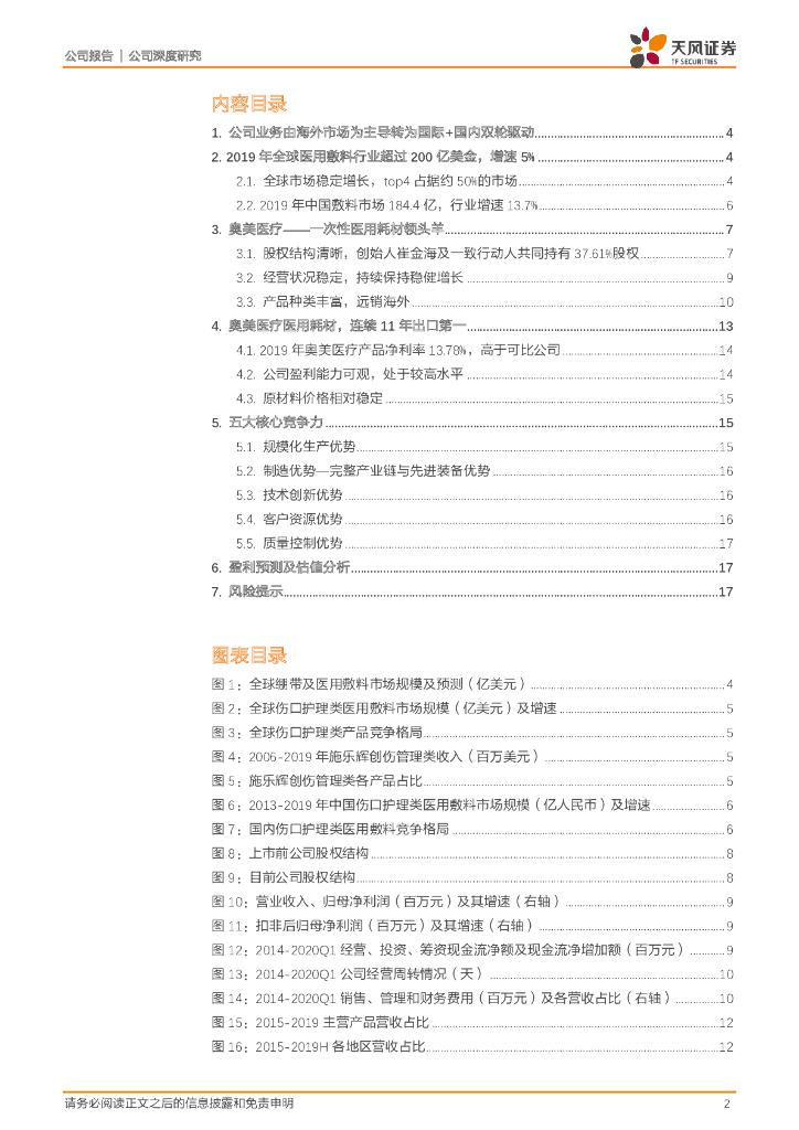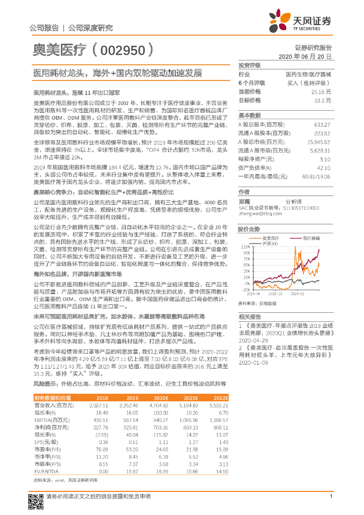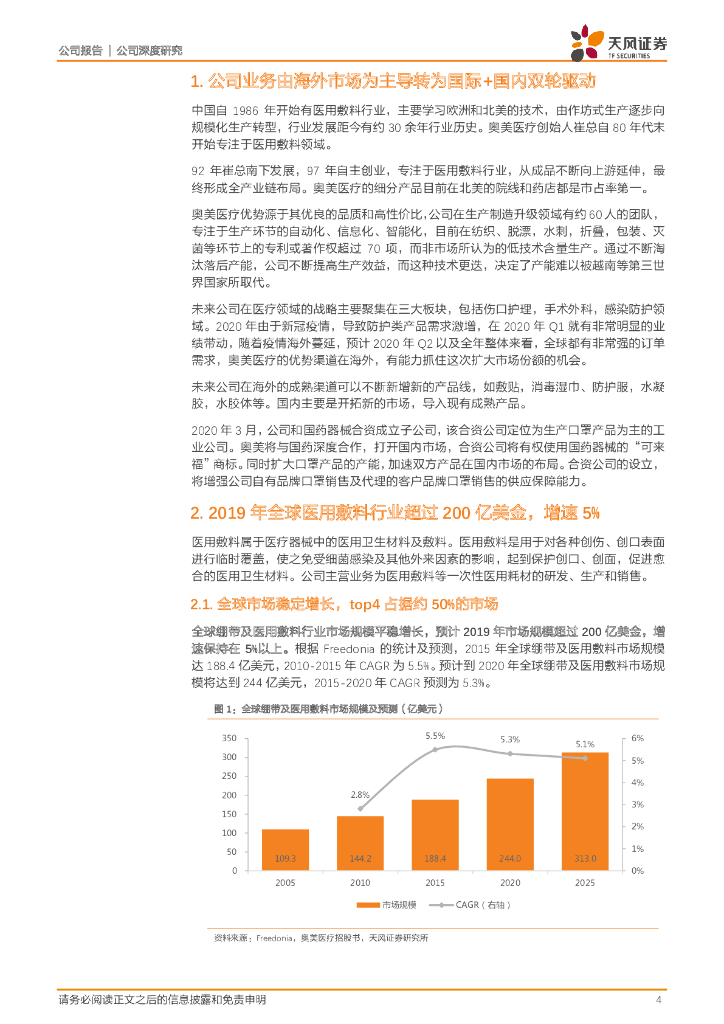 天风证券:奥美医疗(002950)-医用耗材龙头,海外+国内双轮驱动加速发展.pdf