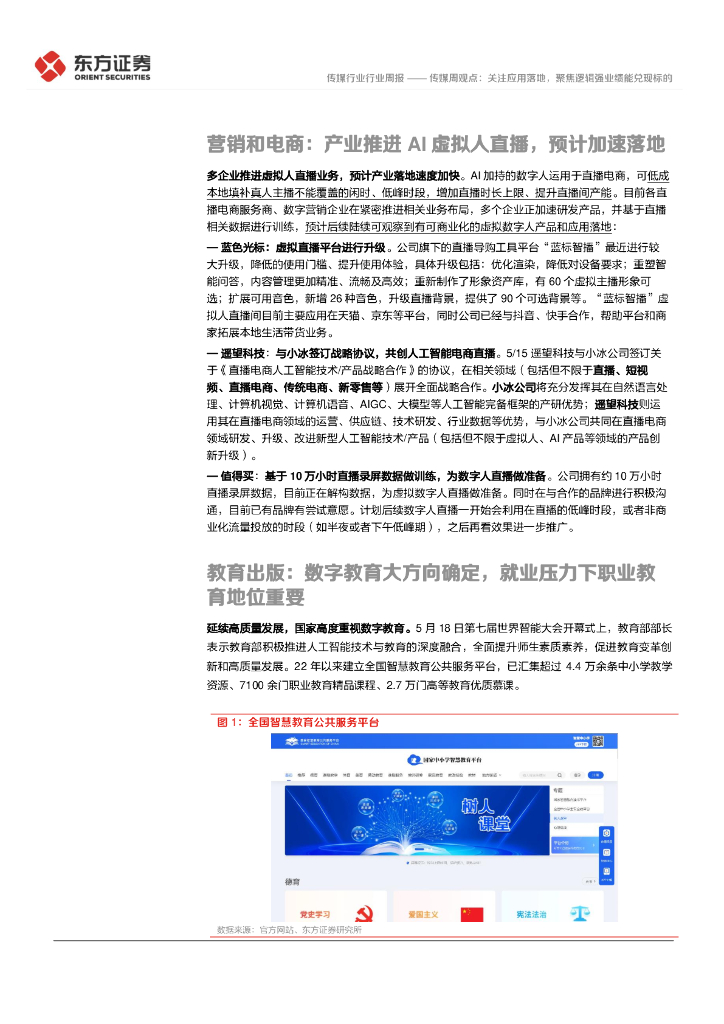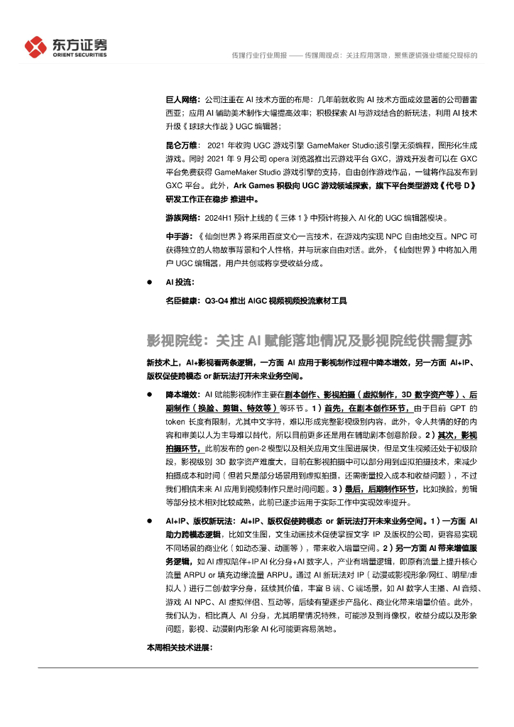 东方证券:传媒周观点:关注应用落地,聚焦逻辑强业绩能兑现标的.pdf