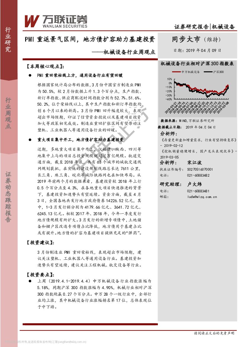 万联证券:机械设备行业周观点:PMI重返景气区间,地方债扩容助力基建投资.pdf