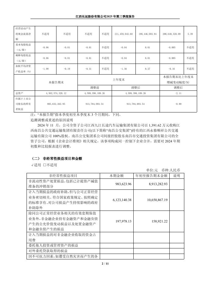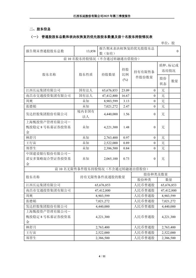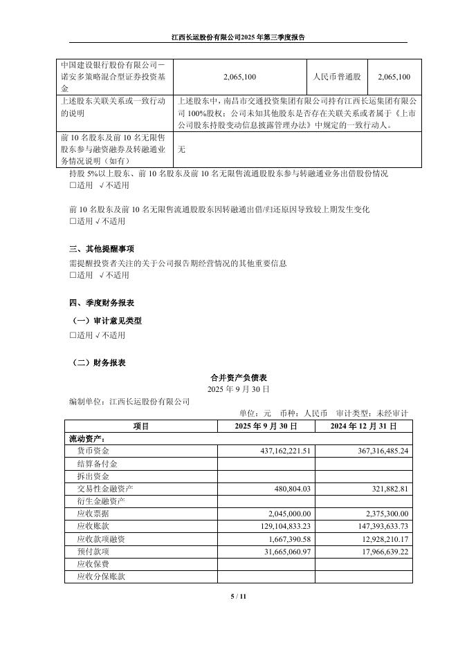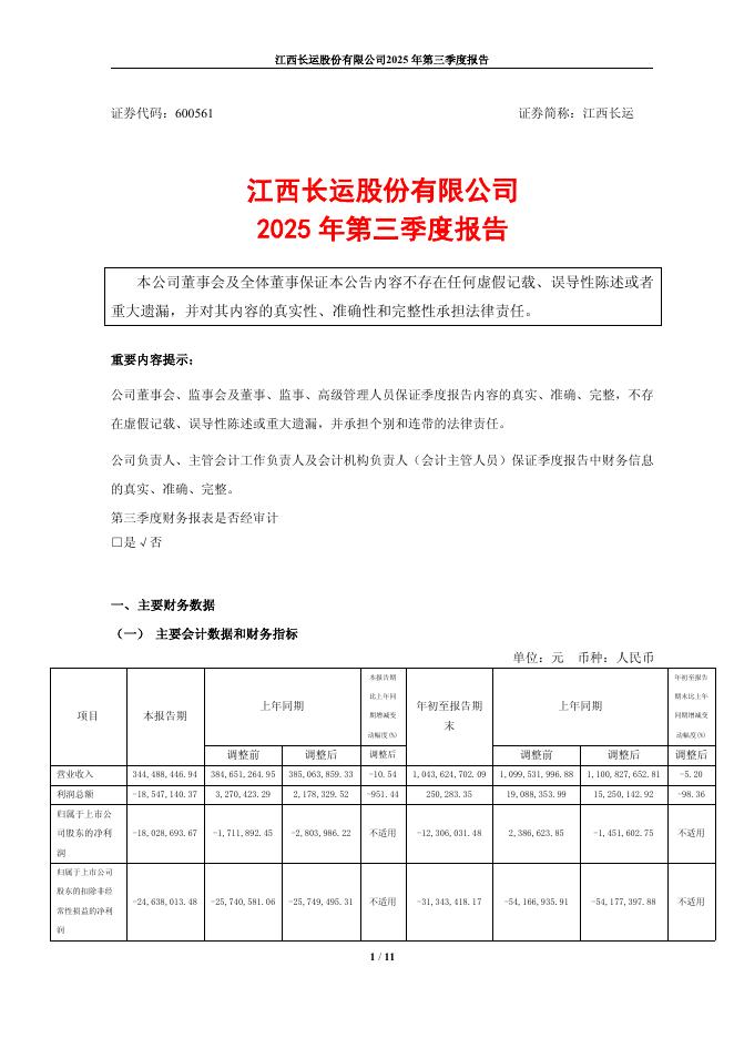 600561-江西长运:江西长运2025年第三季度报告.pdf