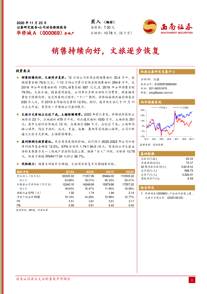 西南证券:华侨城A(000069)-销售持续向好,文旅逐步恢复.pdf