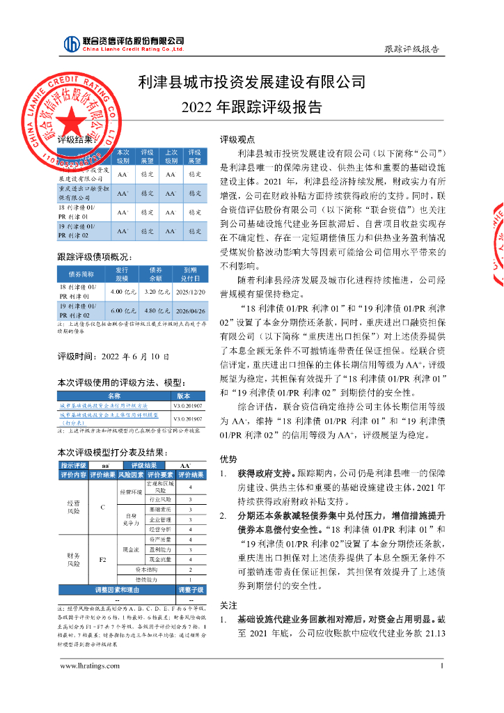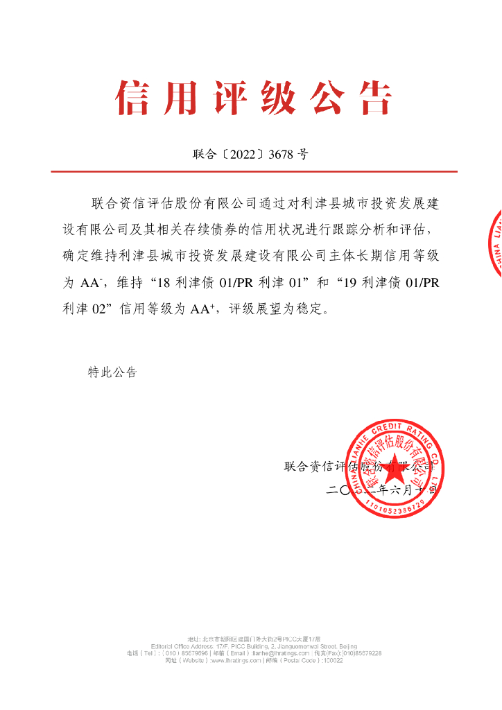 联合资信:利津县城市投资发展建设有限公司2022年跟踪评级报告.pdf