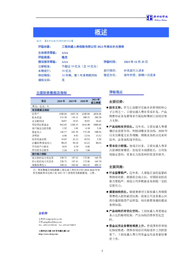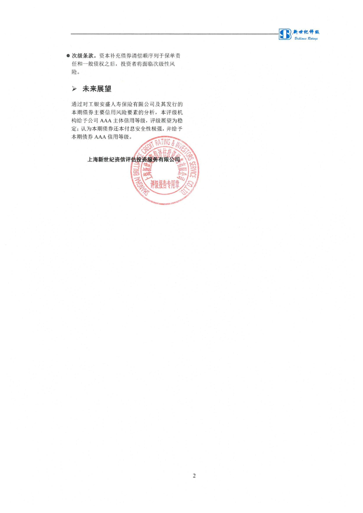 新世纪:工银安盛人寿保险有限公司2022年资本补充债券评级报告及跟踪评级安排-上海新世纪.pdf