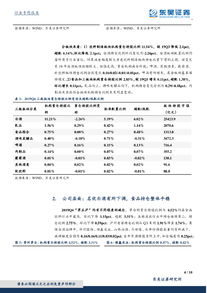 东吴证券:食品饮料行业2019Q4基金持仓分析:名优白酒持仓回落,外资青睐食品龙头.pdf